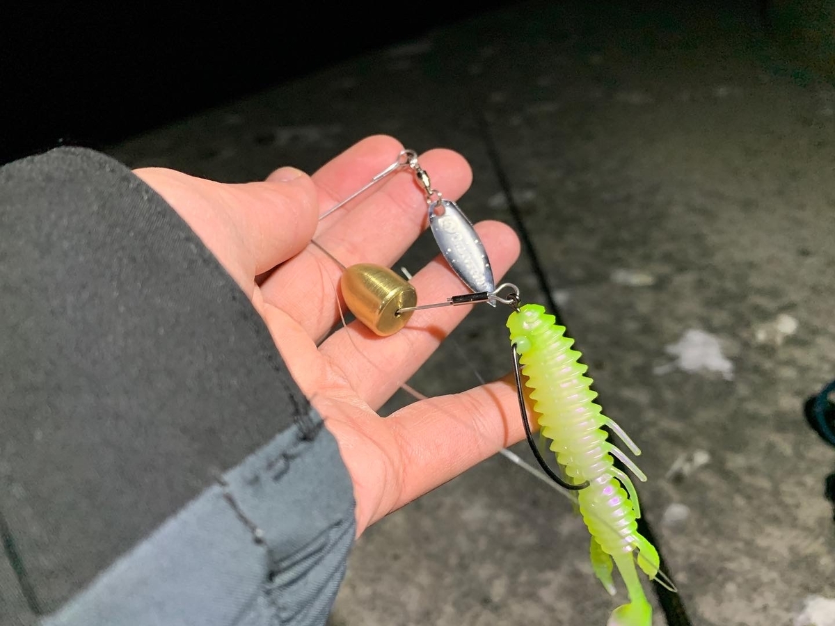 14gのビフテキにデスアダーグラブのパールホワイトグローをセット。